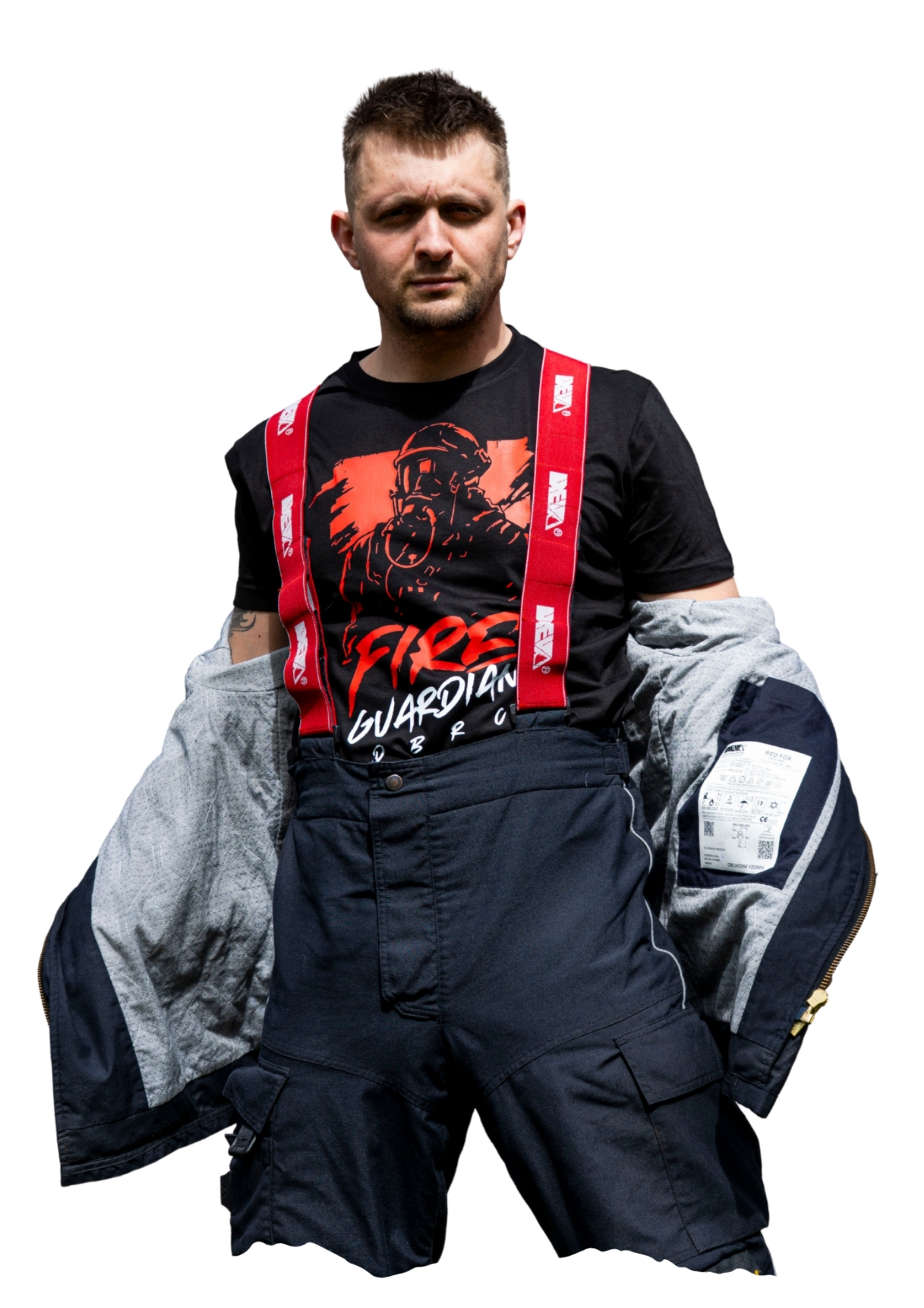 Grafika FIRE GUARDIAN vznikla s cílem vytvořit výrazný a originální motiv inspirovaný hasičským odhodláním, disciplínou a rolí strážce ohně. Každý detail designu byl navrhován tak, aby spojoval moderní styl s hasičskou symbolikou a vytvořil silný vizuál pro každého, kdo hasičinou skutečně žije.